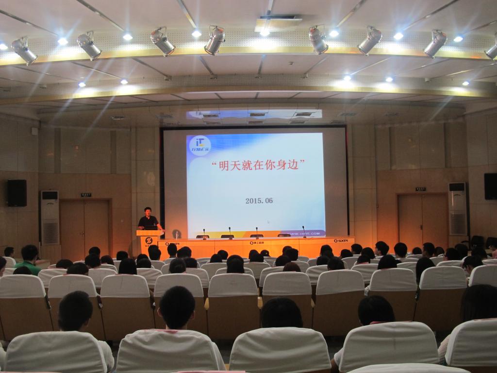 6月18日下午,由校企合作处主办,信息工程学院承办的“文化大讲堂”在学术会堂举行。北京行知汇元科技发展有限华体会董事张保法应邀做“明天就在你身边”的专题讲座。校企合作处副处长郝军莅临现场,信息工程学院300余名学生聆听了讲座,会议由信息学院学工办主任曹伟主持。
