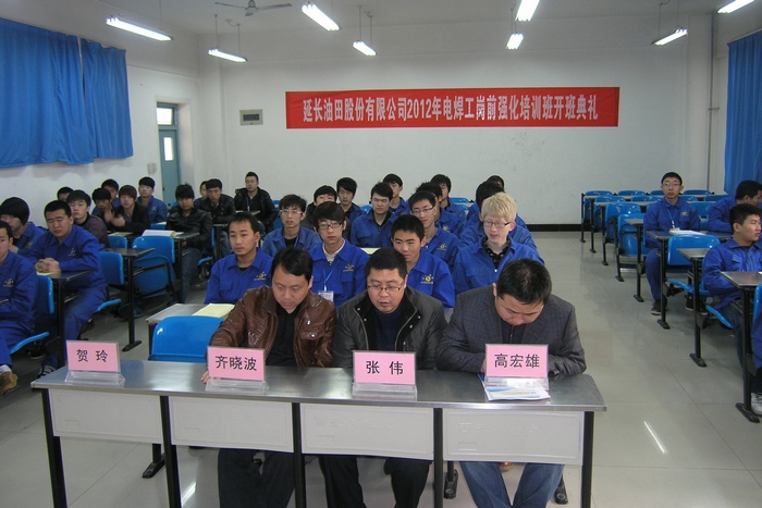 3月12日上午,西安石油大学委托我院实施的“2012年延长石油集团电焊工岗前培训班”正式开班,延长石油集团华体会49名员工将在我院接受为期49天的技术培训。西安石油大学继续教育学院副院长张伟、延长油田股份有限华体会人力资源部培训科科长高宏雄、延长油田机械制造装备股份有限华体会人力资源部科长齐晓波和我院材料学院、继续教育中心的相关人员等参加开班仪式。