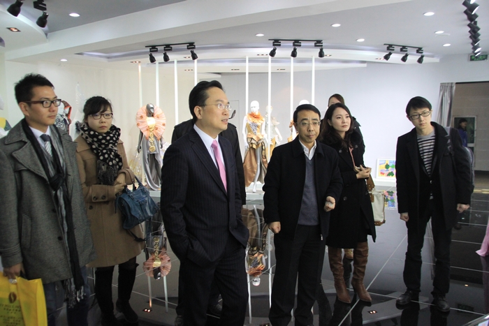 王翔生总裁一行参观服装作品陈列室