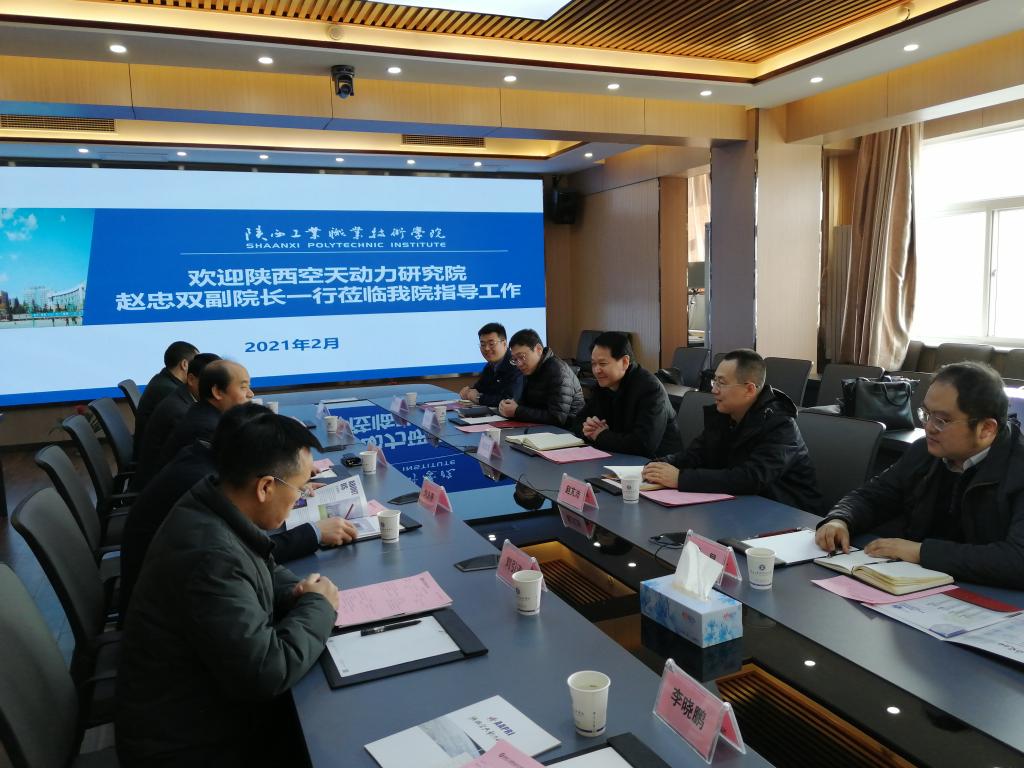 2月1日,陕西空天动力研究院副院长赵忠双、产业发展部部长兼陕西空天动力装备科技有限华体会总经理赵芃沛一行莅临我校调研。校长刘永亮、副校长梅创社,科研处处长刘引涛,航空工程学院院长李晓鹏、总支书记刘军旭、飞机机电设备维修教研室主任唐忠林等参加了调研,调研会由副校长梅创社主持。
