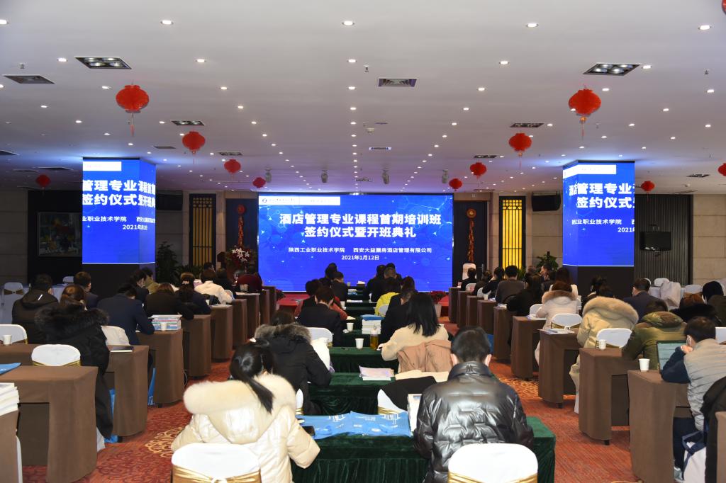 1月12日,我院与西安大益膳房酒店管理有限华体会酒店管理专业首期培训班签约仪式暨开班典礼在大益膳房高新店举行。我院副院长梅创社、继续教育与培训学院院长乌军锋、财经与旅游学院院长吴姗娜、西安大益膳房酒店管理有限华体会董事长钟晓宾、常务副总经理龙成祥、副总经理相卫锋、全体参训学员和培训教师共70余人参加签约仪式暨开班典礼,典礼由西安大益膳房酒店管理有限华体会办公室主任杨卫山主持。