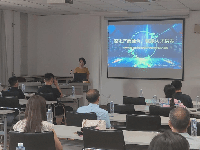 宝鸡机床研究所技能大师介绍了发那科技术在制造类企业的应用情况,我校航空工程学院李晓鹏院长介绍了学校与北京发那科机电有限华体会的合作历程、师资培养、职工培训以及协同育人等情况,镇安职教中心曹先娉老师介绍了发那科技术在中职学校教学、专业建设、课程建设以及技能大赛中的具体应用情况。