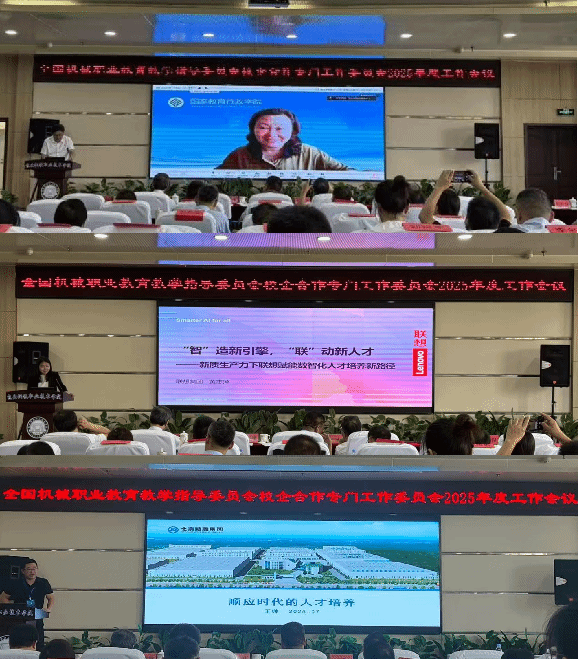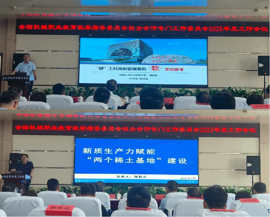 7月30日至31日,全国机械职业教育教学指导委员会校企合作专门工作委员会2025年度工作会议在包头钢铁职业技术学院顺利召开。本次会议由全国机械职业教育教学指导委员会校企合作专门工作委员会主办、包头钢铁职业技术学院与我校联合承办。中国机械工业联合会教育培训部主任、机械工业教育发展中心主任陈晓明,全国机械行指委校企合作专门工作委员会主任委员刘永亮,包头市教育工委副书记、市教育局党组书记胡海峰,包头钢铁职业技术学院党委书记任延东、校长张利文等领导出席会议,来自全国各地专委会副主任委员成员、委员及委员单位代表、有关院校、企业、研究机构、行业协(学)会代表等60余人参加了会议。