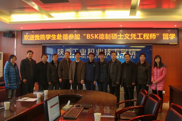 会上,二级学院领导及教师对将要赴德学习的同学寄予厚望,希望两名同学能尽快适应国外的学习生活,积极克服语言障碍,圆满完成学业。副院长王津首先祝贺两名同学有幸成为我院第一批“BSK德制硕士文凭工程师”学员,勉励他们努力学习、克服困难,并预祝他们学有所成!他说学校会继续把这个项目做大、做好,让更多的同学有机会出国学习。两名同学也在会上发言表态,他们表示感谢学院对他们的培养,也感谢母校给他们搭建的进修平台,他们会努力学习德国先进的技术和严谨的工作态度,并时刻谨记自己是一个中国人,积极利用自己的影响力传播祖国的优秀文化。