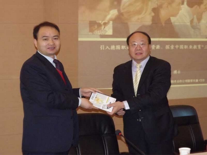 最后,德国凯勒华体会中国区总裁高鹏博士作了《引进德国职业教育优质资源,探索中国职业教育三元制模式》的专题报告。
