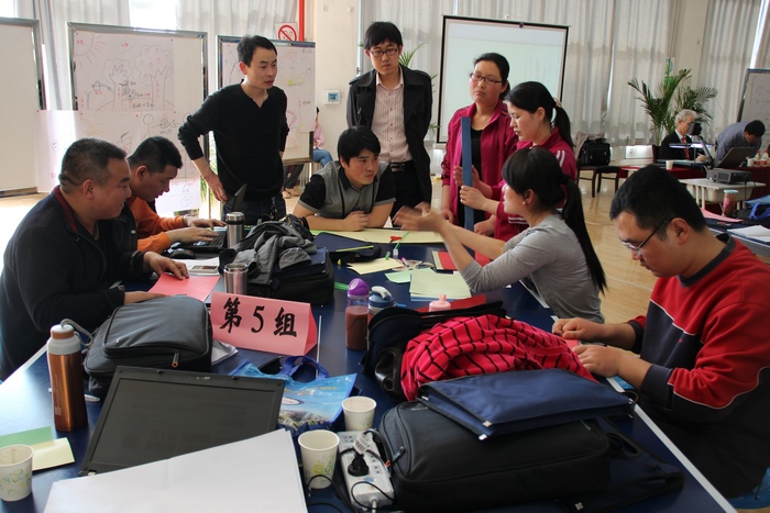 4月15日,“德国职业教育教学法”培训进行至第4天,也是最后一天,胡格教授带领大家学习了卡片复习法、行动导向(任务)之小组拼图法等教学方法,并给学员们布置了“计划建造一个Kugelbahn之小球滑道制作”的工作任务。学员们在胡格教授生动有趣的讲解带动下,愉快地体验着各种新颖的教学方法与教学理念,并综合运用学到的知识、发挥各自专长,积极动手制作属于本组的小球滑道。