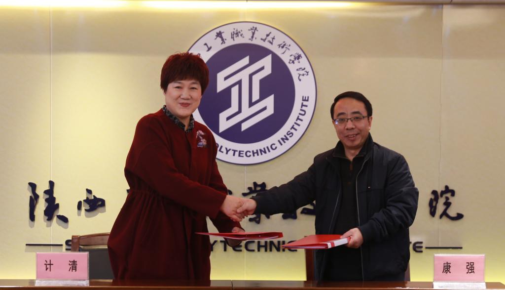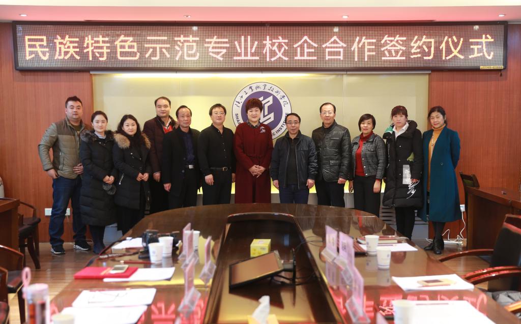 随后,康强同志与计清同志代表校企双方签署了服装与服饰设计专业民族特色创新示范点合作框架协议、校外专业带头人聘用协议及服装与服饰设计专业民族特色创新示范实习基地合作协议,康强同志为计清颁发校外专业带头人聘书。会议最后,康强同志、计清同志代表校企双方为校内陕西省非遗传承人计清大师工作室,校外陕西工业职业技术学院服装与服饰设计专业民族特色创新示范实习基地揭牌。本次协议的签订将带动我院服装与服饰设计专业的发展,为深化教育教学改革、推动民族特色示范专业人才培养迈上新台阶奠定了坚实基础。