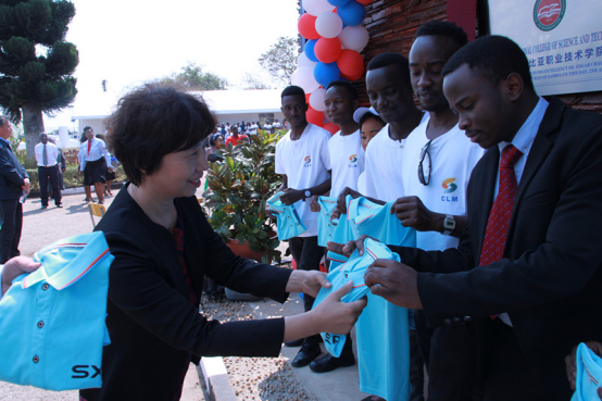 张晓云院长向我院赞比亚分院师生发放学院T恤衫