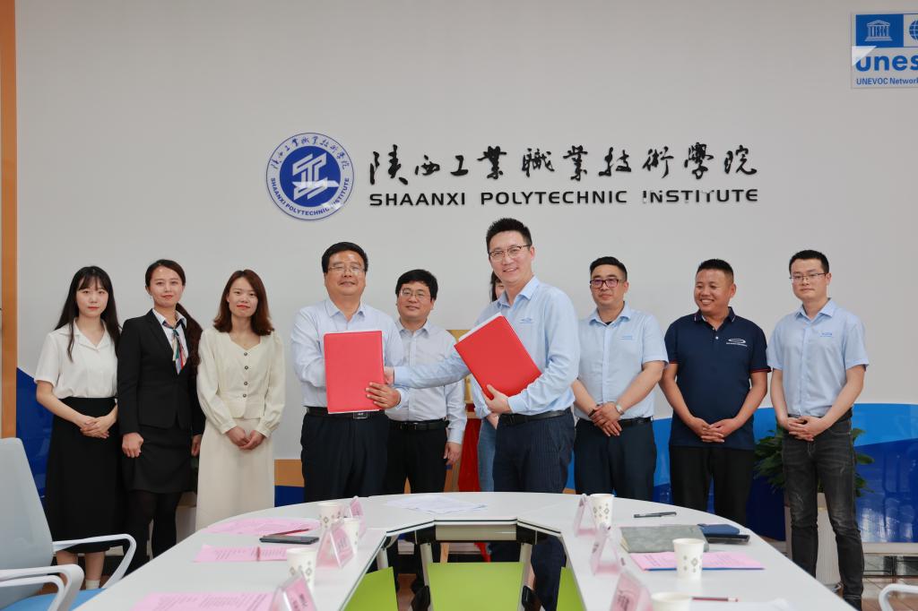 田昊副书记、李东鑫总监共同为“陕西工业职业技术学院、浙江杜成实业有限华体会国际人才联合培养基地”揭牌。就现代学徒制国际人才联合培养、印尼籍员工技能培训、技术服务等合作项目,国际教育学院院长秦景俊、李东鑫总监、苏维尼奥院长分别代表三方签署了“校企协同推进国际人才联合培养协议”和“印尼秦工苑国际人才联合培养三方协议”。