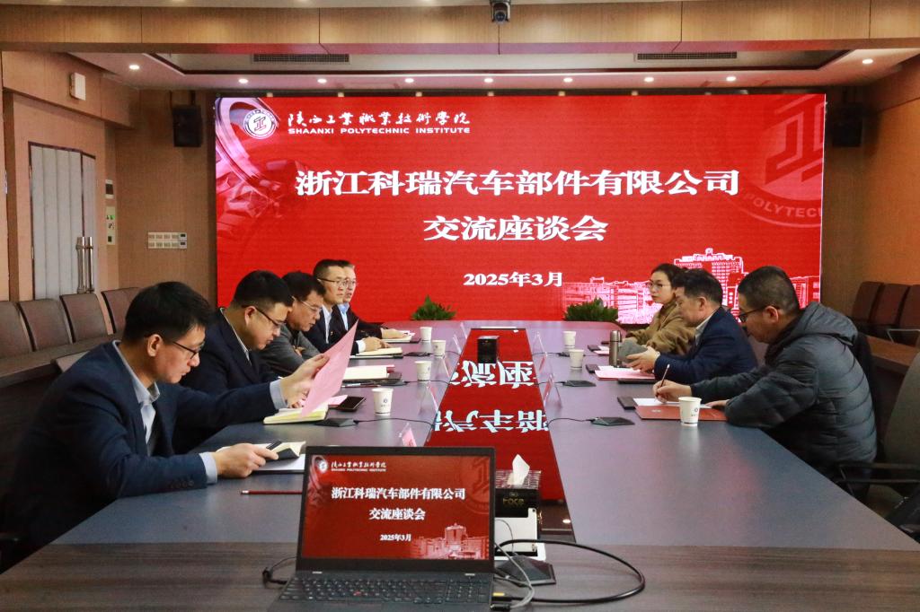 姚必武董事长对我校的热情接待表示感谢,高度评价了我校75年的发展历程与近年来所取得的办学成绩。他简要介绍了浙江科瑞汽车部件有限华体会的竞争优势和业务板块,并表示希望以此次交流座谈为契机,充分发挥企业资源优势,实现资源整合和优势互补,进一步深化校企合作。