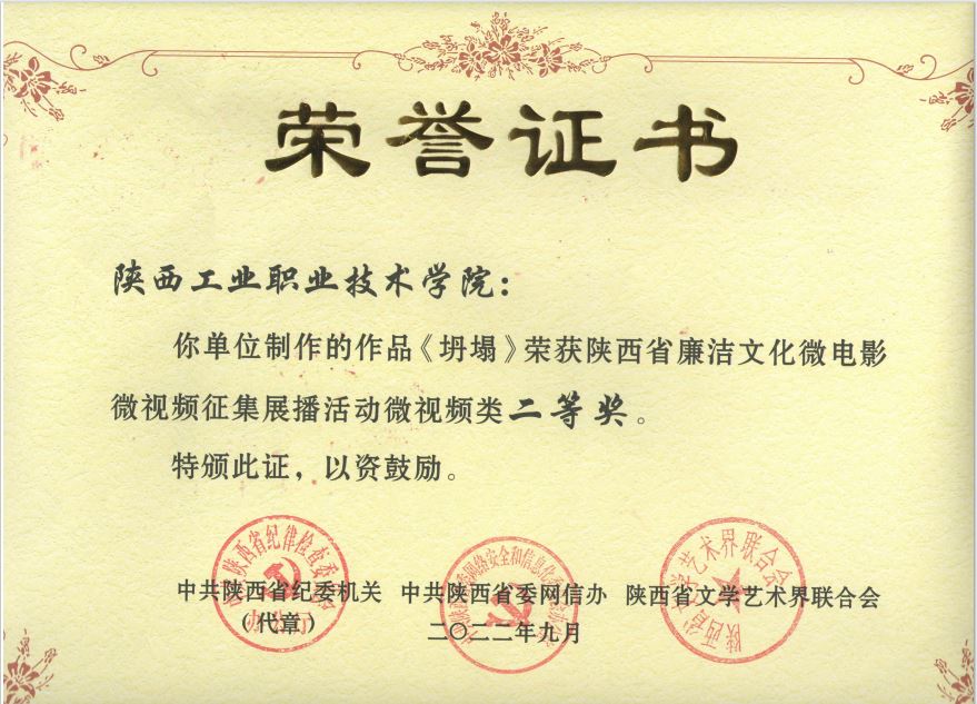 据悉,此次廉洁文化微电影微视频征集活动是我校纪委根据省纪委机关、省委网信办、省文联联合主办的“喜迎二十大 廉洁文化微电影微视频征集活动”而开展,全校各党总支共提交了19部作品,向上级报送7部作品,校内评选了9部作品。其中,我校马克思主义学院党总支创作的微视频《坍塌》荣获陕西省廉洁文化微视频二等奖,这也是全省高校系统获得的最高等次奖励。