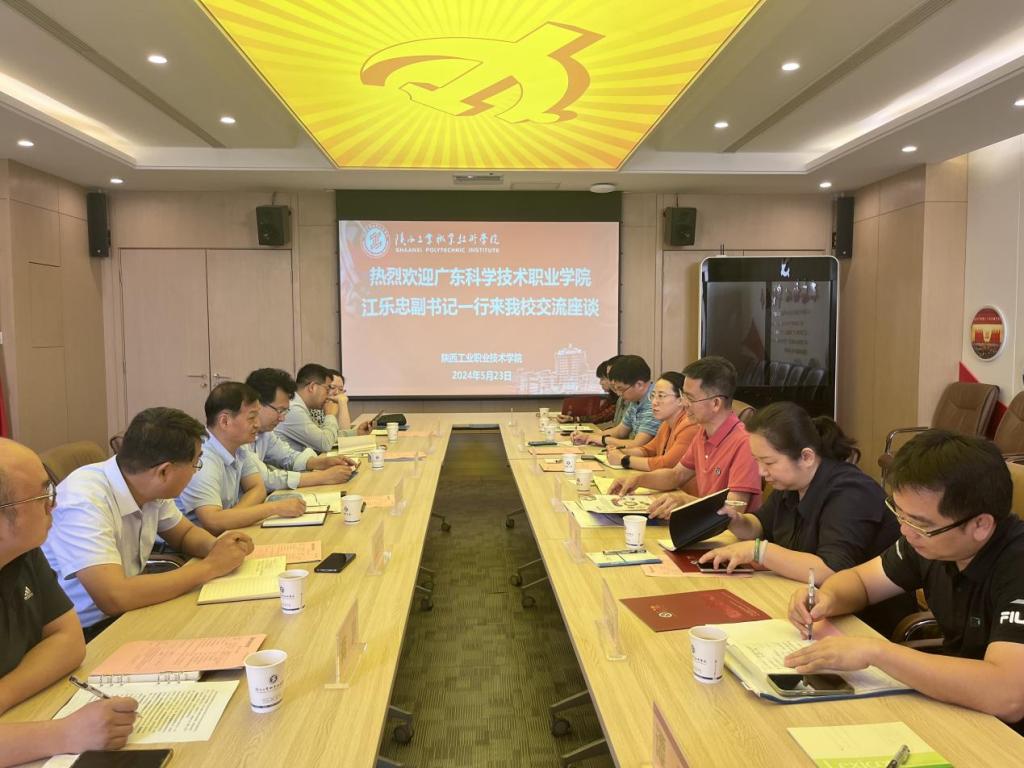 5月23日,广东科学技术职业学院党委副书记江乐忠一行8人来我校交流座谈.学校党委副书记贺天柱及学生工作部、党委宣传部、航空工程学院、商贸与流通学院等相关部门负责同志陪同座谈交流,座谈会由贺天柱副书记主持。