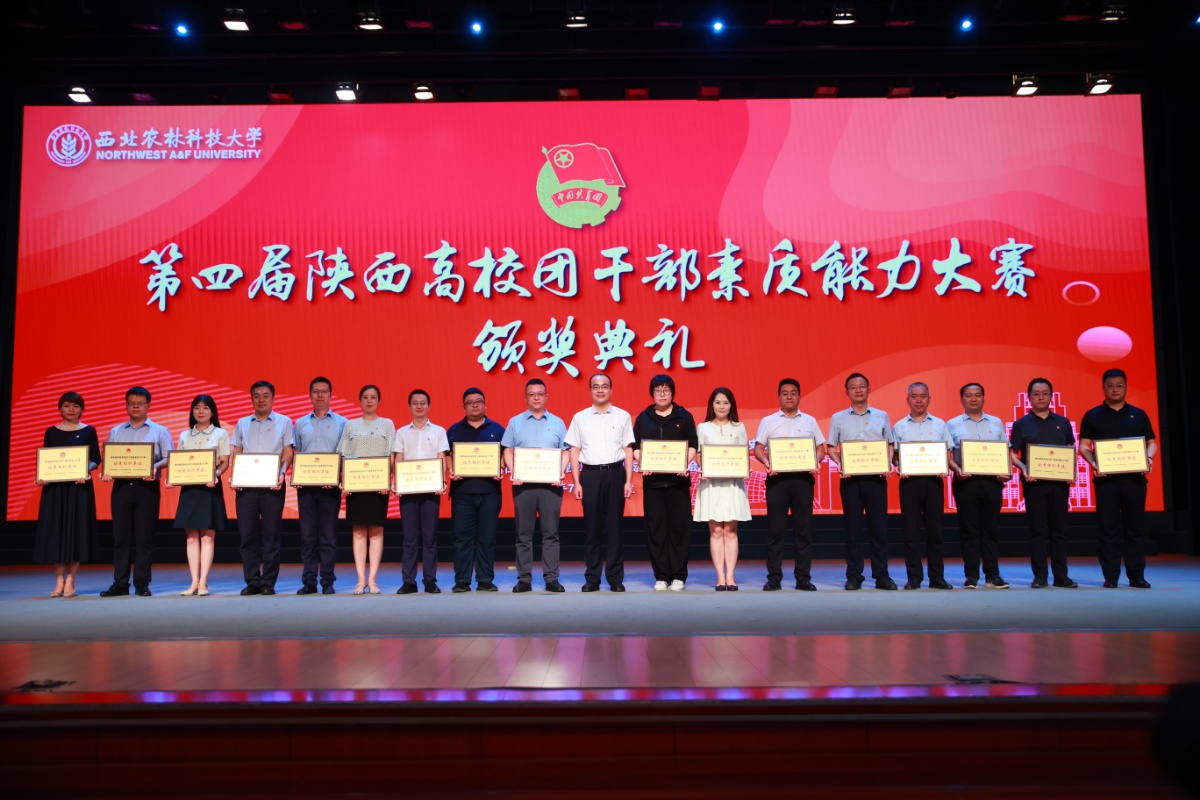 共青团陕西省委学校部部长郝鹏涛为专职团干部组一等奖获得者颁奖,我校教师团干部王凯悦