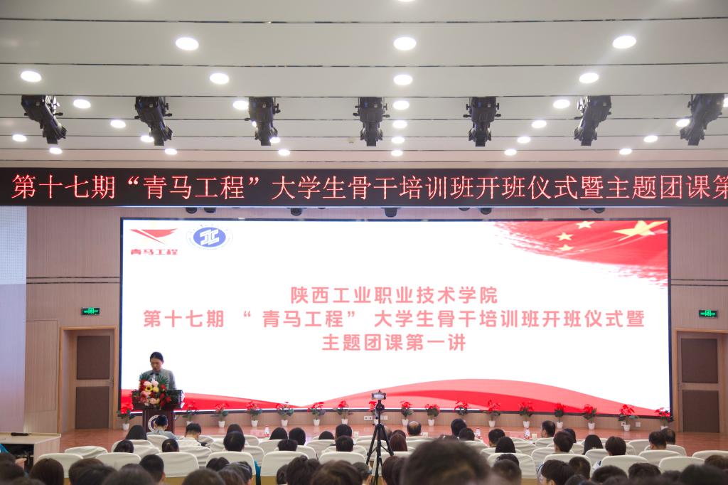 开班仪式在庄严的国歌声中拉开帷幕。会议上,由党委组织部副部长姚海伟宣读《陕西工业职业技术学院第十七期“青马工程”大学生骨干培训班培养方案》,学工部部长、学生处处长郝军宣读《陕西工业职业技术学院第十七期“青马工程”大学生骨干培训班分组名单》,马克思主义学院副院长王辉宣读《陕西工业职业技术学院青马工程大学生骨干培训班管理制度》。随后,党委组织部副部长姚海伟为学员代表授旗,党委学工部部长郝军为学员代表赠书;第四届陕西高校团干部素质能力大赛学生团干部组二等奖获得者、商贸与流通学院商数2201班刘倩同学代表全体青马学员发言,国旗护卫队颉文卓同学带领全体学员庄严宣誓,志愿成为一名光荣的青年马克思主义者,学员代表集体朗诵《请党放心强国有我》。