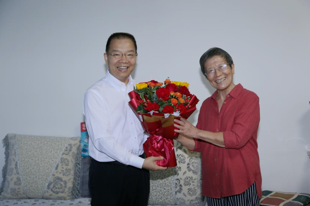 金桂飘香送祝福,雨中慰问暖人心。在第38个教师节和传统佳节中秋节即将来临之际, 为弘扬新时代尊师风尚,激励广大教师热爱教育事业,积极进取,开拓创新,推动学校各项事业全面发展。9月8日上午,我校党委书记惠朝阳、校长刘永亮及学校领导班子成员一行,冒雨分别走访慰问了离退休老教师代表,并为他们送上教师节、中秋节的美好祝福,热情邀请离退休老教师们去新校区走一走、看一看,共同见证几代陕西工院人新校区梦的圆梦时刻,希望他们保重身体、生活顺心、继续为学校的教育事业发展建言献策。