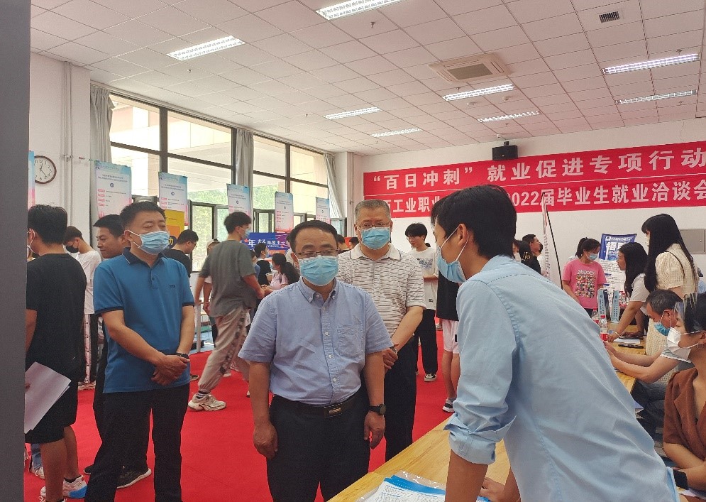 5月27日在学校举办的招聘会现场,康强分别对来校招聘的西安中兴通讯股份有限华体会、陕西正泰智能电器有限华体会、西安荷佐里机电科技有限华体会咸阳分华体会、陕西长风新能源科技有限华体会、陕西隆基乐叶光伏科技有限华体会等五家企业表示了热烈的欢迎并进行了深入交流。康强表示,企业要加强对学生的后续培养,为学生提供良好的职业通道,争取把优秀的学生放在优质的岗位上。对现场应聘学生,康强要求同学们做好充分准备,鼓励同学们适应新形势,转变职业观念,顺利走好职场第一步。
