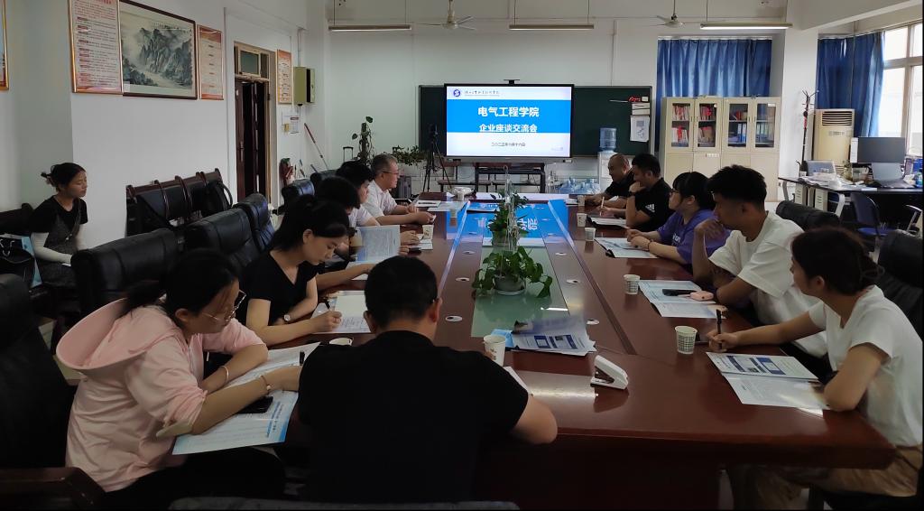 为进一步深化校企合作,加强协同育人,持续深化内涵建设,实现校企优质资源融合发展。6月16日,电气学院邀请了浙江长江汽车电子有限华体会、天合光能(宿迁)光电有限华体会、陕西正泰智能电气有限华体会、江苏恒科新材料有限华体会、西安德赛控制系统有限责任华体会等10家企业参加了“访企拓岗进校园”座谈会。党总支书记韩伟、学工办主任赵松、毕业班辅导员参加了此次座谈会,会议由赵松主持。