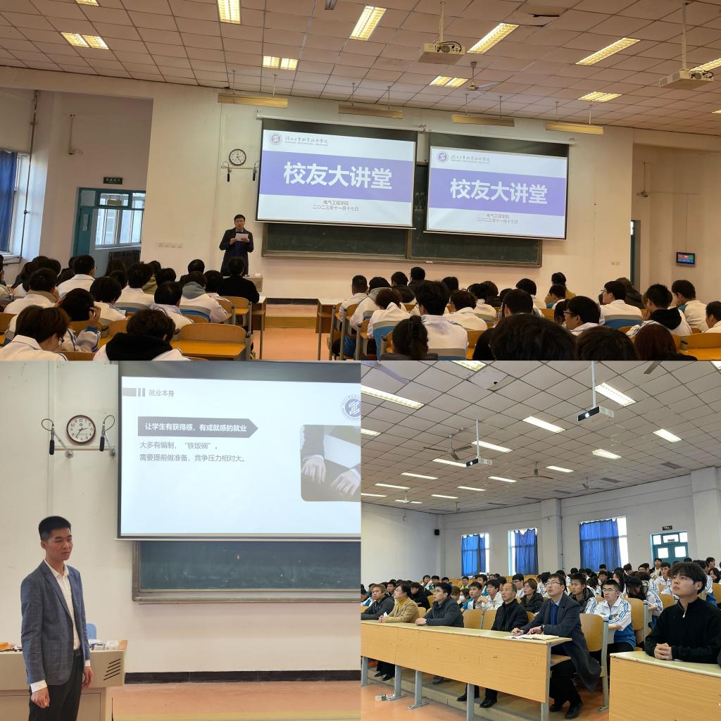 11月17日下午,电气工程学院邀请优秀校友、电气自动化技术专业18届毕业生王晓鑫,在崇文西楼302教室向2022级、2023级学生作了以“谈就业——新时代背景下如何让学生高质量就业”为主题的报告。报告会由电气工程学院党总支书记刘其兵主持。