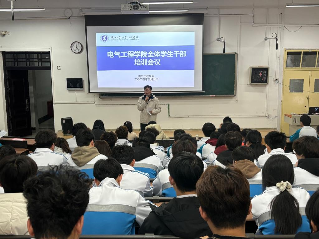 为进一步加强学生干部队伍管理,增强学生干部能力素质,表彰先进,树立典型,3月11日下午,电气工程学院组织全体22级、23级班团干部在崇文北楼阶梯教室4开展学生干部培训会议,学工办全体辅导员参加会议,会议由学工办主任赵松主持。