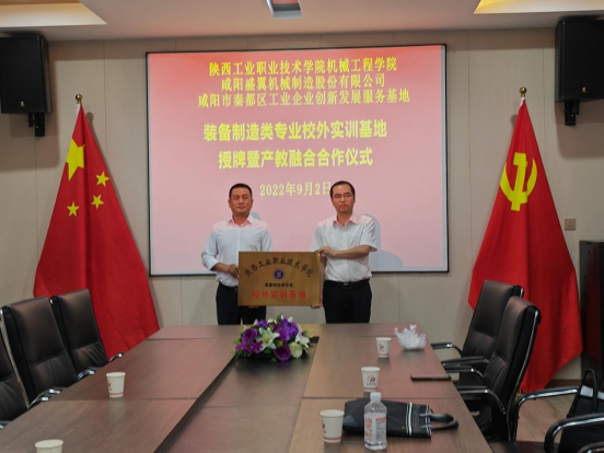 9月2日下午,我校机械工程学院“装备制造类专业校外实训基地”揭牌暨产教融合合作仪式在咸阳盛翼机械制造股份有限华体会会议室隆重举行。咸阳市秦都区工信局中小企业服务中心主任李瑛、机械工程学院党总支书记苏宏志、西部产教融合研究院院长王建军、先进制造精雕产业学院负责人王帅、咸阳盛翼机械制造股份有限华体会董事长何军峰等相关人员参加了会议,会议由咸阳盛翼机械制造股份有限华体会总经理贾天社主持。