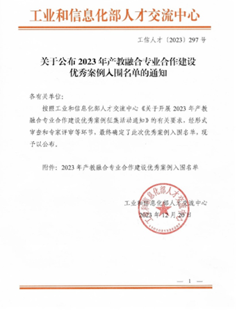 近日,工业和信息化部公布了2023年产教融合专业合作建设优秀案例入围名单,全国共有60所高校及企业优秀案例入围,我校机械工程学院报送的《校企协同共育人 产教融合促发展》案例成功入围二等优秀案例。