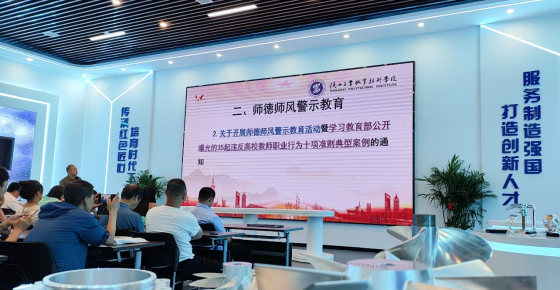 5月20日,为进一步加强师德师风建设,打造一支高素质的教师队伍,提升教育教学质量,机械工程学院开展师德师风警示教育活动暨学习教育部公开曝光的35起违反高校教师职业行为十项准则典型案例的通知,学院全体教职工参会,机械工程学院党总支书记侯涛主持会议并领学。