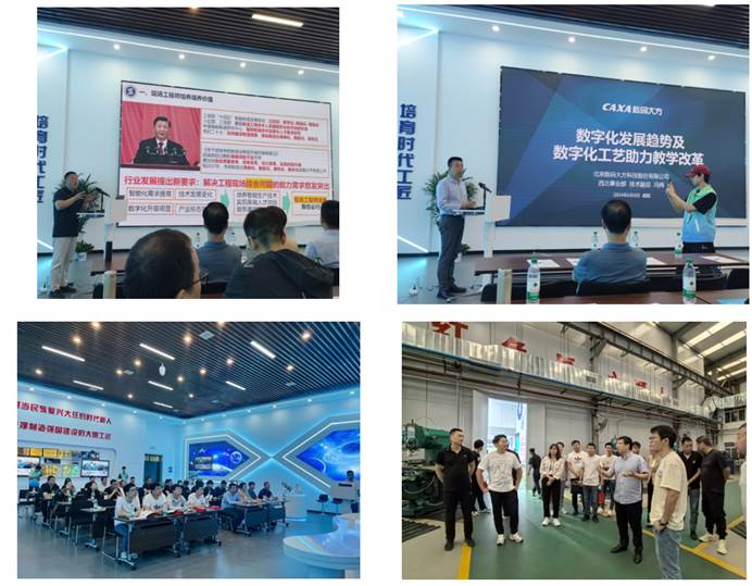 培训期间,陕西工业技术学院机械工程学院院长赵明威围绕“智能制造背景下高水平技术人才培养路径的研究与实践”,做了精彩的报告。内容包括国家“双高”机械制造与自动化专业群建设中的理念与思考,体系设计,具体措施和创新实践,具有很强的指导意义。北京数码大方科技股份有限华体会技术副总冯伟做了“数字化发展趋势及数字化工艺助力教学改革”报告。北京数码大方科技股份有限华体会技术经理王二建进行了工艺图表系统功能演示。会后培训学员参观了机加工技术训练中心。