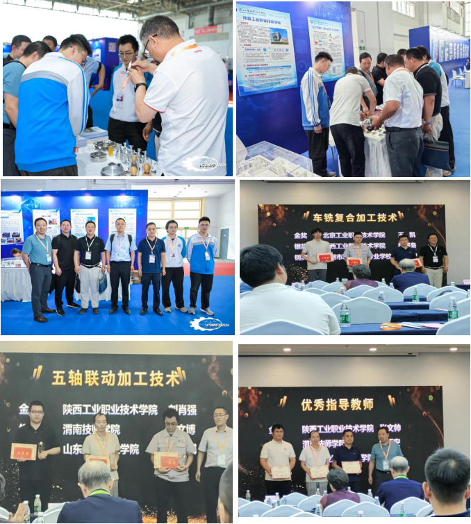 在此期间,由全国机械行业智能制造与精密检测协同创新中心、机械行业企业人才认证与就业服务联盟、山东辰榜数控装备有限华体会主办的2024年高端数控机床加工技术邀请赛在中国国际会展中心顺义馆举行,我校由张文帅老师指导的学生刘肖强获得五轴加工技术赛项金奖,学生胡程枭获得车铣复合加工赛项银奖,张文帅获优秀指导教师金奖。五轴加工和车铣复合两个赛项均为单人赛,每个赛项由1名选手组成,共有来自全国20所院校的30名选手同台竞技。参赛选手需要根据技术图纸和技术要求,进行工艺制定、数控编程、刀具选择及安装、刀偏设定等工作,以去除材料的方式去加工精度等级等于IT6级或低于IT6级精度的工件。最后根据任务书和工程图要求完成零件装配。