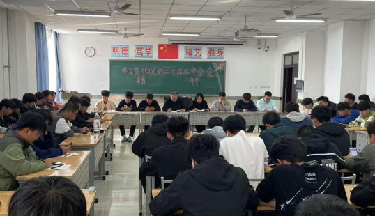 10月23日下午,机械工程学院总支书记侯涛、副书记郭旭华深入机制2402班、机制2403班宣讲党的二十届三中全会精神,宣讲会在崇明楼402教室举行,会议由班主任任军辉主持,全体学生参与。