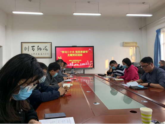 为深入学习贯彻党的二十大精神,11月1日下午,在行知E楼511会议室,材料工程学院党总支召开“学习二十大 党员来读书”主题党日活动,活动由材料工程学院党总支郝平主持,党总支副书记、院长李云及全体教师党员参加。