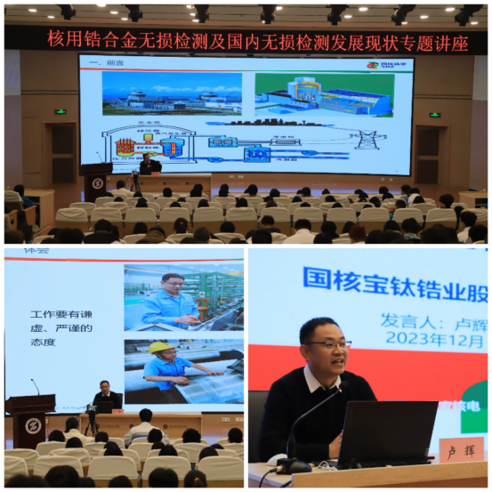 讲座上,卢辉首先与学弟学妹分享了自己多年的成长经历和工作经验,为在座同学提出了几点建议和期望:一是要珍惜时间,做好职业规划,不能荒废大好时光;二是在学校要积累丰富的知识,学会自学,学会做人处事,建立良好的人际关系;三是在工作或创业中要能够持之以恒,谦虚严谨、善于总结、敢于创新、不断突破。随后,卢辉从检验技术基础知识、锆材检验技术、锆材检测控制、我国无损检测的发展现状以及检测设备等五个方面作了系统的报告。
