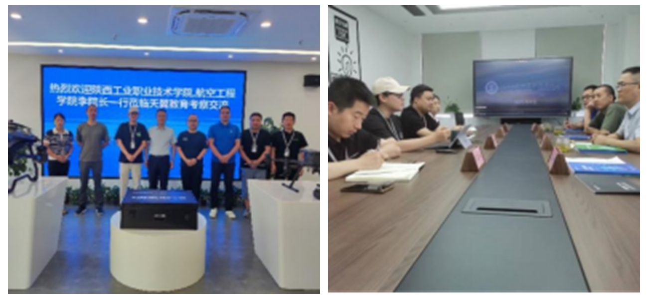 7月21日,航空工程学院院长李晓鹏、飞机机电设备维修教研室主任唐忠林、教师南亨、马鸿一行四人赴西安天翼智控教育科技有限华体会(以下简称西安天翼智控)、天翼无人机飞行学院调研,并就专业建设、人才培养、实训科研、校企合作等方面进行了交流座谈,西安天翼智控总经理邵靖宇、销售总监苟富文、技术总监黎育果、业务部门经理马妮娜参与了座谈。