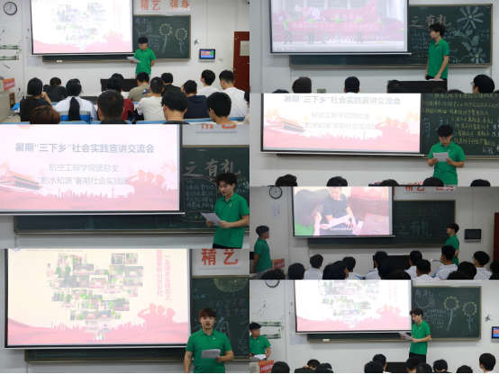 为深入学习贯彻党的二十大和二十届三中全会精神,贯彻落实习近平总书记关于教育的重要论述,引领青年学生了解国情民情、增长知识才干,厚植家国情怀、激发挺膺担当,2024年9月5日晚,航空学院组建专项宣讲团,走进学院晚自习教室开展暑期“三下乡”“返家乡”社会实践成果宣讲活动。