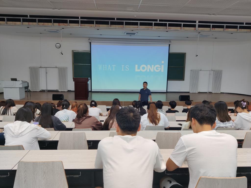 会上,隆基乐叶光伏科技(西咸新区)有限华体会招聘主管席守丞通过现场讲解和视频播放介绍了华体会具体情况、发展历程、企业文化和当前重点项目。同时该华体会已和学院签订校企合作协议,本次主要选拔订单班学生,企业招聘负责人详细介绍了“隆基乐叶订单班”企业顶岗实习的具体要求、应达到的目标以及本次的招聘需求及岗位要求、工作内容、薪资福利待遇、应聘流程和入职后职业发展路径等问题。