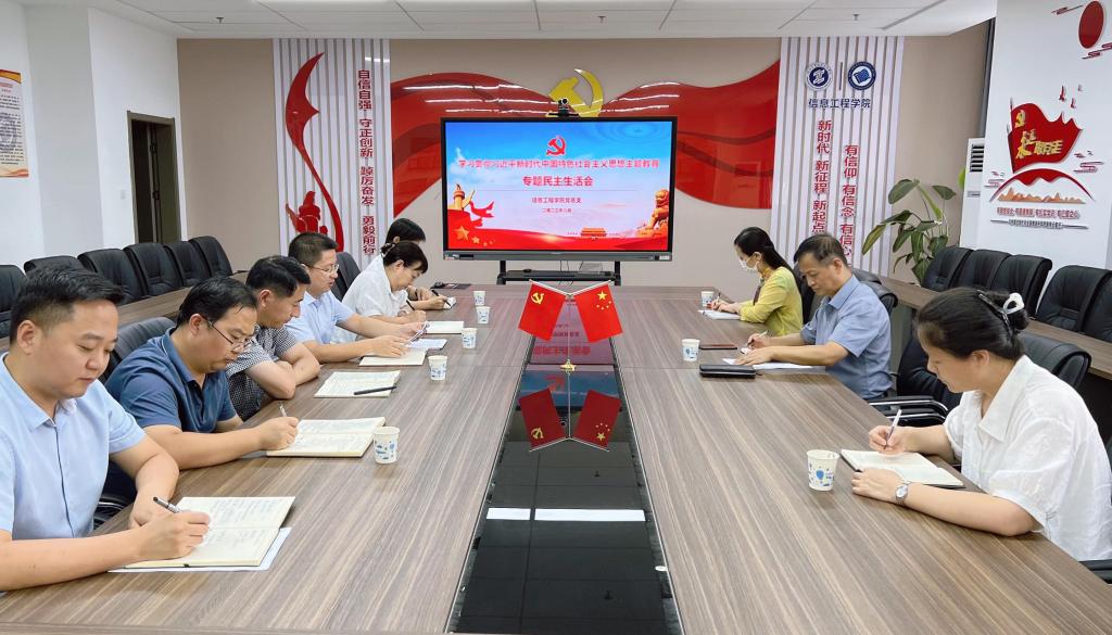 9月1日上午,信息工程学院党总支在经开校区崇理楼C801会议室召开学习贯彻习近平新时代中国特色社会主义思想主题教育专题民主生活会,学院党委副书记贺天柱到会督导。信息工程学院处级党员领导、总支委员参加了会议,党支部书记桓美丽、李俊列席。党总支书记闫军主持会议。