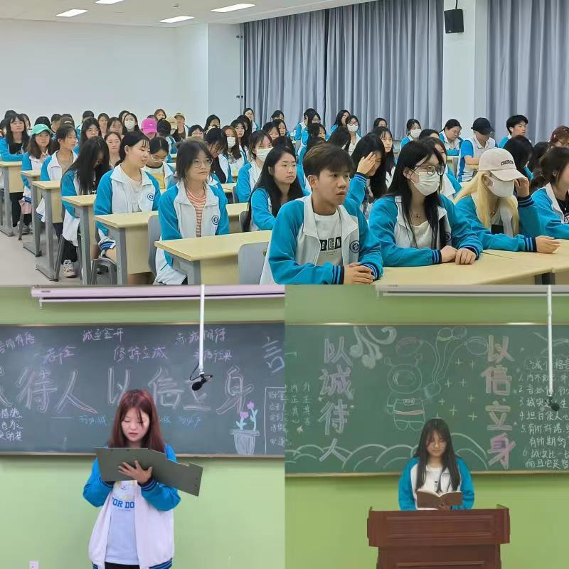 为了进一步落实学校《开展资助育人主题活动的通知》的工作安排,促使我校学生充分认识诚信教育活动的重要性和必要性,树立诚信观念、增强法律意识,财经与旅游学院在各班晚自习教室组织开展诚信教育实践活动之“以诚待人 以信立身”主题班会。