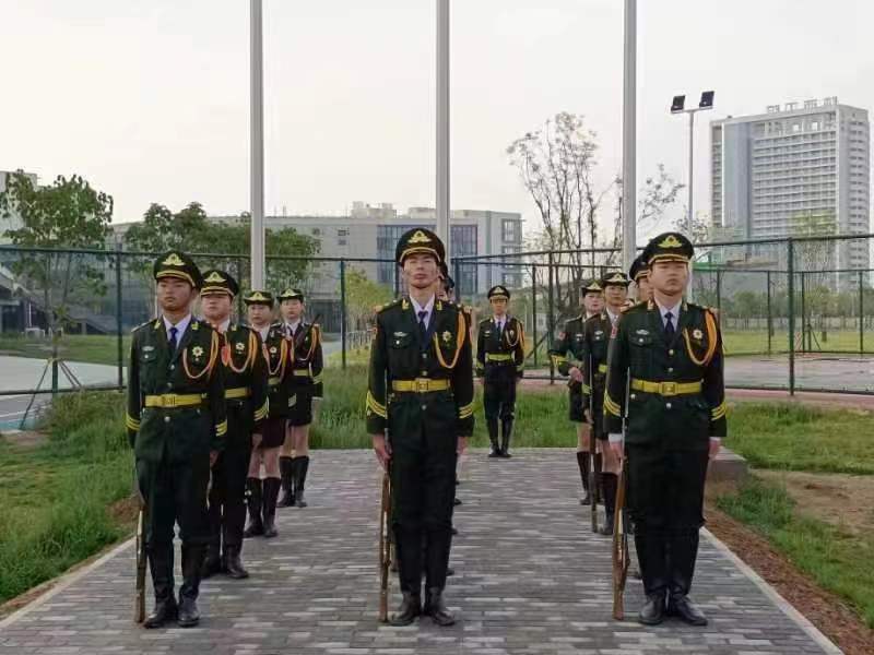 6点50分,升旗仪式正式开始。迎着初升的朝阳,国旗护卫队队员护送鲜艳的五星红旗走向升旗台,伴随着庄严的国歌声,全体师生昂首肃立,向国旗行注目礼。
