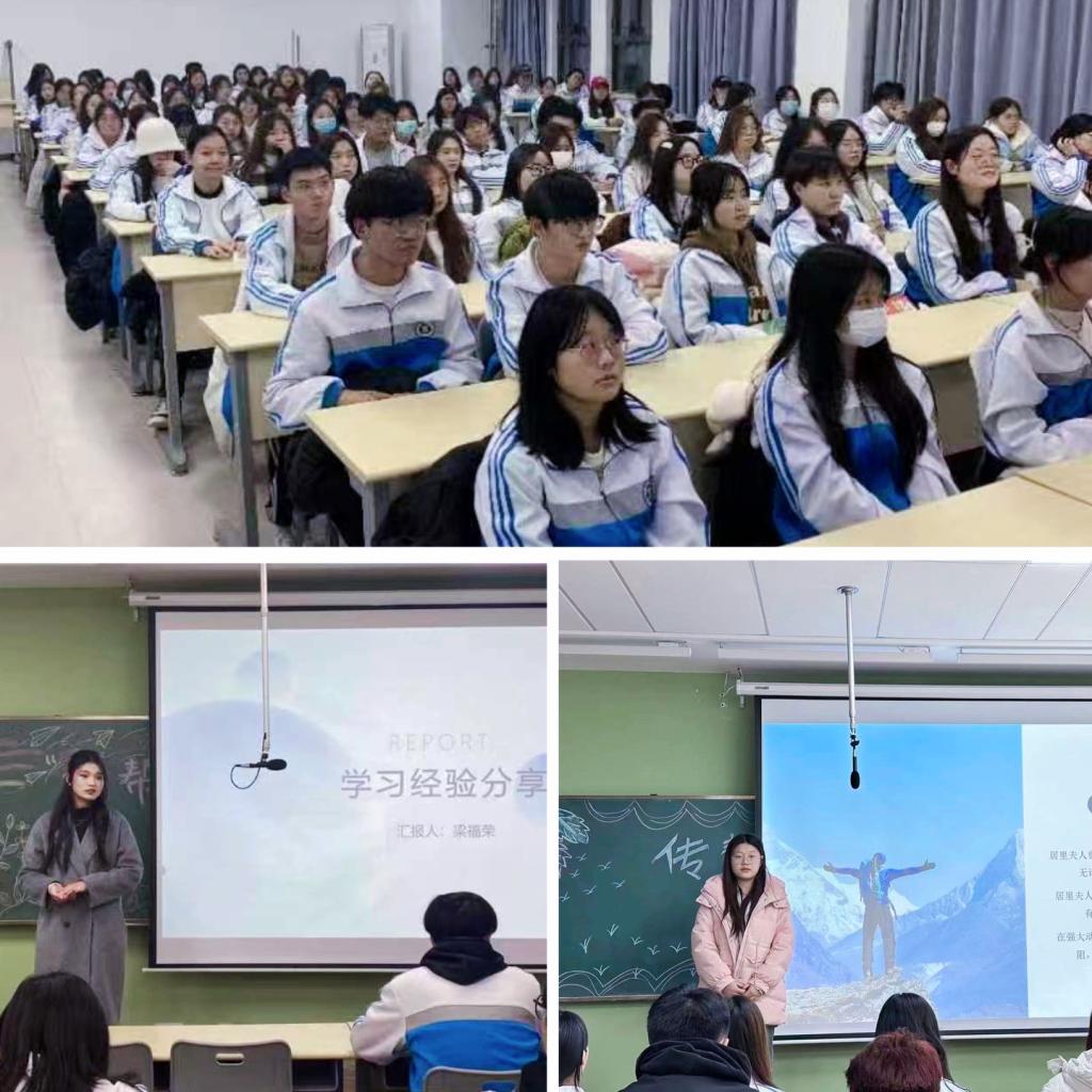 为了帮助2023级新生更好的适应大学学习生活,12月12日下午20时,财经与旅游学院在经开校区崇理楼E新生晚自习教室,举办了“学习经验传帮带,财经学风再传承”学习经验交流会。本次活动由2021级、2022级国家奖学金、励志奖学金、筑梦奖学金获奖者,共69位优秀学生代表,分别走进2023级15个新生班级进行学习经验分享和交流,会议由2023级新生辅导员、班主任主持召开。
