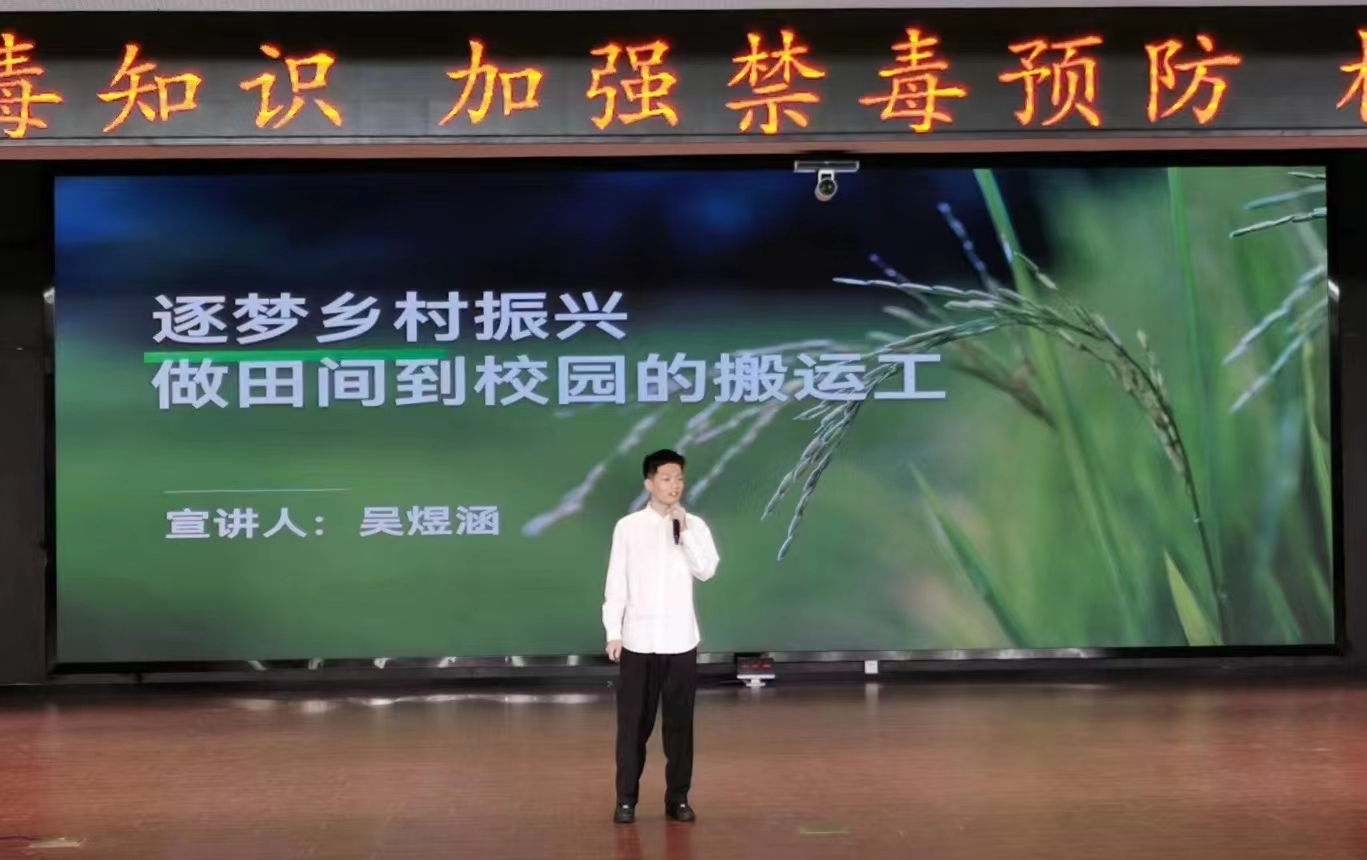 吴煜涵从个人成长经历着手,讲述了家乡亲人辛勤劳作的不易,自己入伍后面对冲突、对国家富强的认识,在心里悄然种下助力乡村振兴的种子。退役复学后,吴煜涵结合所学专业,不断探索实践,先后开发、创办了“急派果果”微信小程序和陕西锦煜佳强商贸有限华体会。通过实地调研,将各种优质水果送入校园,把乡村田野与校园师生连接起来,为农产品拓展销售渠道,助推产业振兴提质增效。