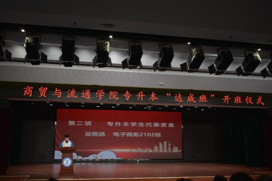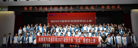 5月11日下午,商贸与流通学院在图文信息中心图文报告厅二举行2021级专升本“达成班”开班仪式,学工办主任成志平、辅导员代表、学生工作助理以及2021级专升本学生代表参加了开班仪式。