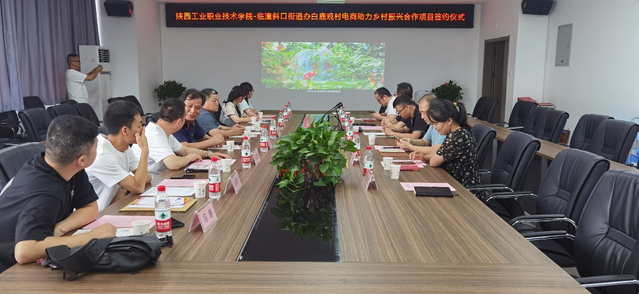 为了积极响应国家乡村振兴战略号召、致力于区域经济发展,7月11日上午,在陕西工业职业技术学院经开校区崇理楼B04会议室,陕西工业职业技术学院商贸与流通学院、临潼斜口街道办白鹿观村和西安今成电子商务有限华体会达成一致,“校、企、政”三方合作,运用新媒体助力乡村振兴发展,并举行签约仪式。