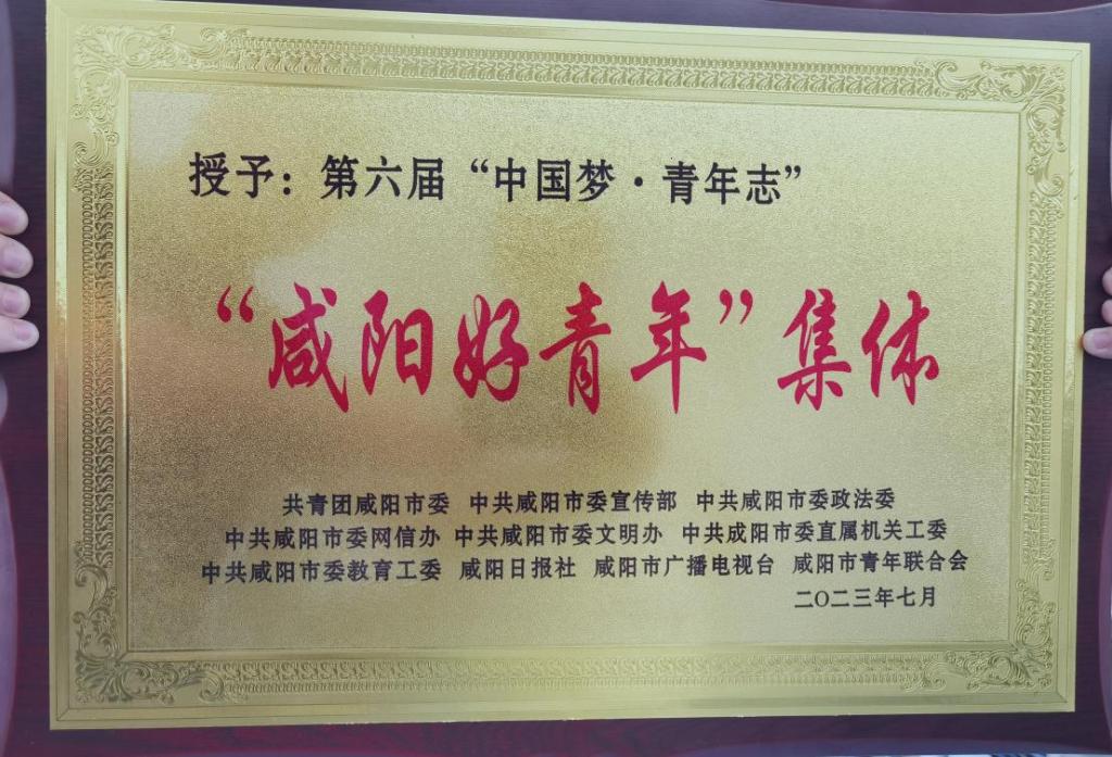8月4日,由咸阳市共青团主办的“中国梦·青年志”第六届咸阳好青年颁奖仪式在咸阳市广播电视台举行。陕西工业职业技术学院商贸与流通学院电商助力乡村振兴团队凭借创新的援助方案和突出的事迹成果,荣获“咸阳好青年”集体荣誉称号。