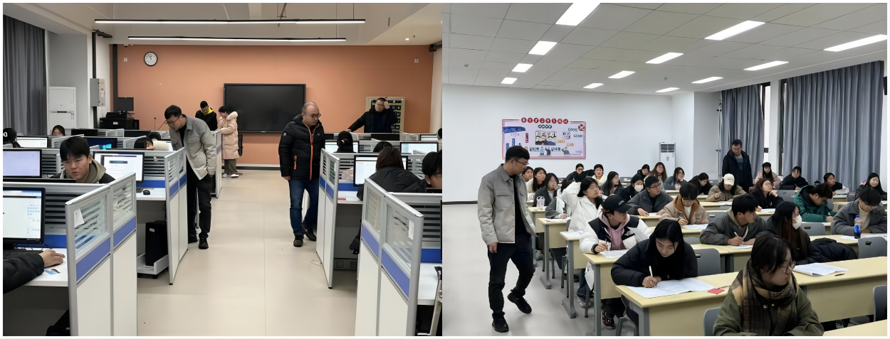 1月15日起,商贸与流通学院本学期期末考试相继进行。本次考试共涉及26门课程,69场次,276人次监考、700余名考生。为确保期末考试顺利进行,商贸学院高度重视,组织教师集体学习学院关于考试的相关文件。教学办全力做好期末考试工作的总体协调,实训中心配合机考场地的协调和准备工作,学工办负责通知学生考次安排并开展考风考纪专题教育。本学期期末考试严格执行学院印发的《关于做好2023-2024学年第一学期期末考试工作的通知》的要求,对考试时间、试卷命制、监考巡考、成绩录入等工作逐一落实。