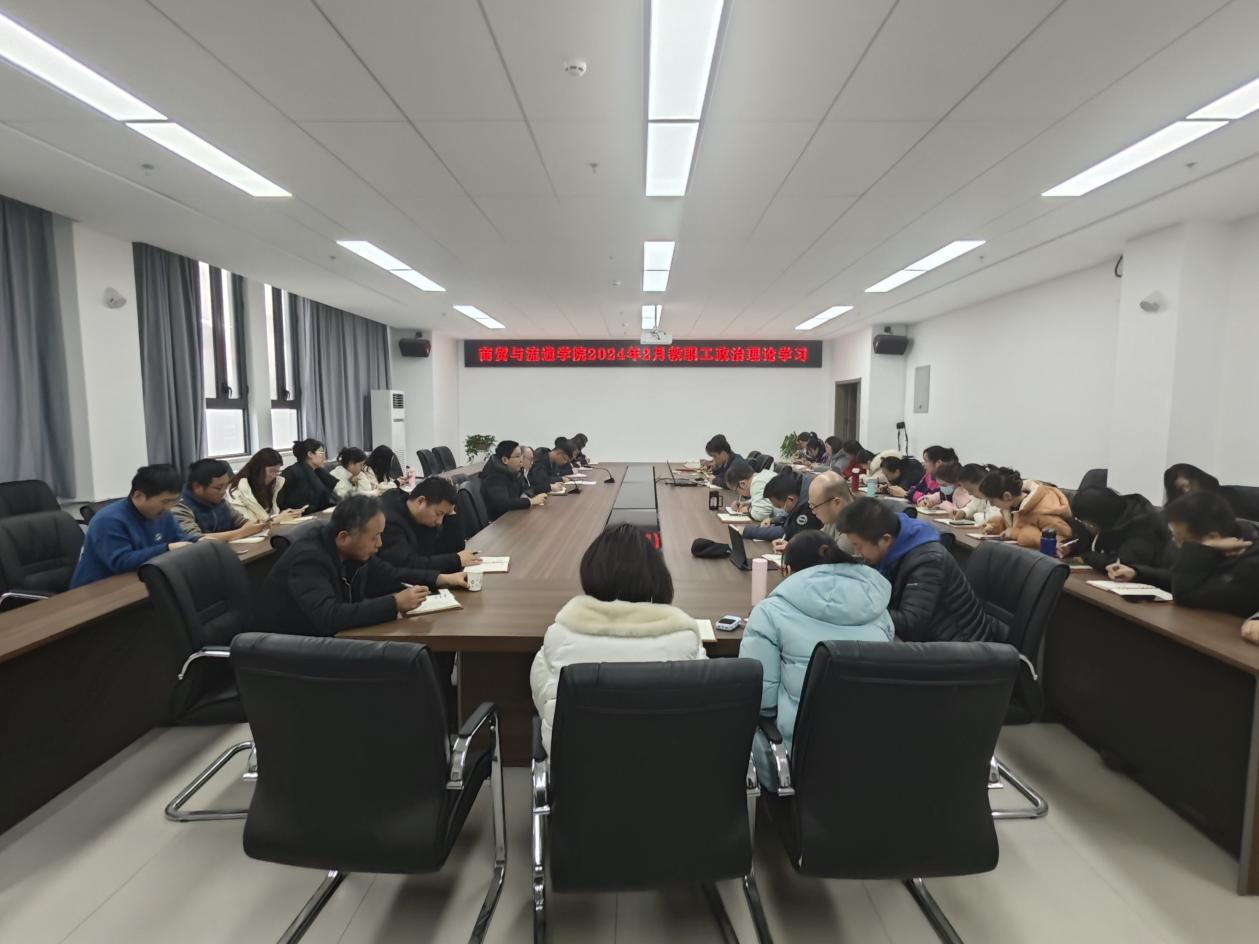 2月26日,商贸与流通学院在崇理楼B605会议室召开全院教职工政治理论学习会。会上传达2024年全国教育工作会议精神,学院全体教职工参加学习。学习会由商贸与流通学院党总支副书记蒋鹏同志主持。