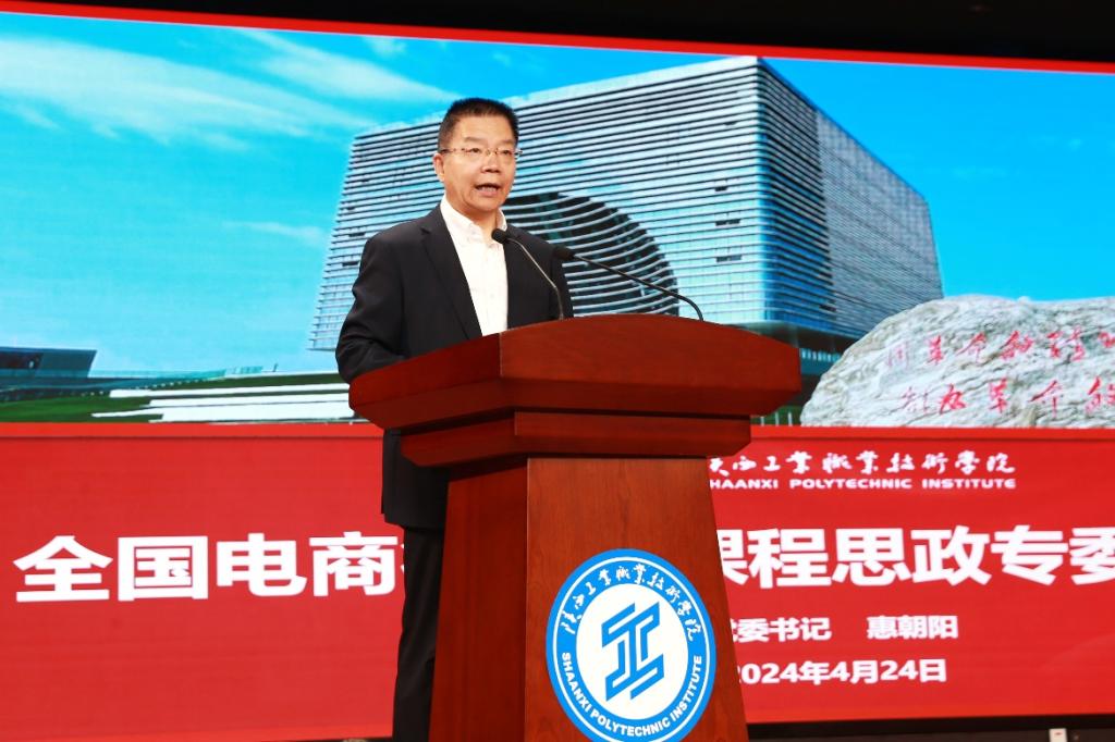 4月23日、24日,由全国电子商务职业教育教学指导委员会主办,陕西工业职业技术学院、全国课程思政教学研究示范中心、教育部高校思想政治工作创新发展中心承办的全国电子商务职业教育教学指导委员会课程思政专门委员会成立大会在我校经开校区顺利召开。全国电子商务职业教育教学指导委员会常务副主任陆春阳、陕西省教育厅职业教育与成人教育处副处长周杰、中国人民大学哲学院副院长张霄、无锡学院党委书记杨建新、我校党委书记惠朝阳、副书记贺天柱以及来自全国70余所高校的校长、副校长、二级学院院长、党总支书记、教研室主任及骨干教师现场参会。