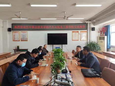 3月28日上午,汉中职业技术学院汽车与机电工程学院副院长曹磊(主持工作)一行人来校调研交流。我校汽车工程学院副院长许冀阳(主持工作)、机械工程学院副院长张文亭及信息工程学院、电气工程学院等相关二级学院代表共同参与座谈,会议由汽车学院副院长许冀阳主持。