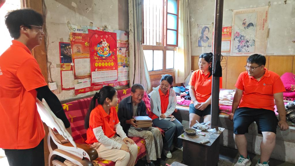 实践团成员来到张咀村张勤玉和崔世春两位老党员的家中,与老党员们亲切交谈、嘘寒问暖,并为他们送去了纪念品和手工皂等慰问品,询问他们近期的身体和生活情况,同时认真倾听他们的入党故事、奋斗经历等。