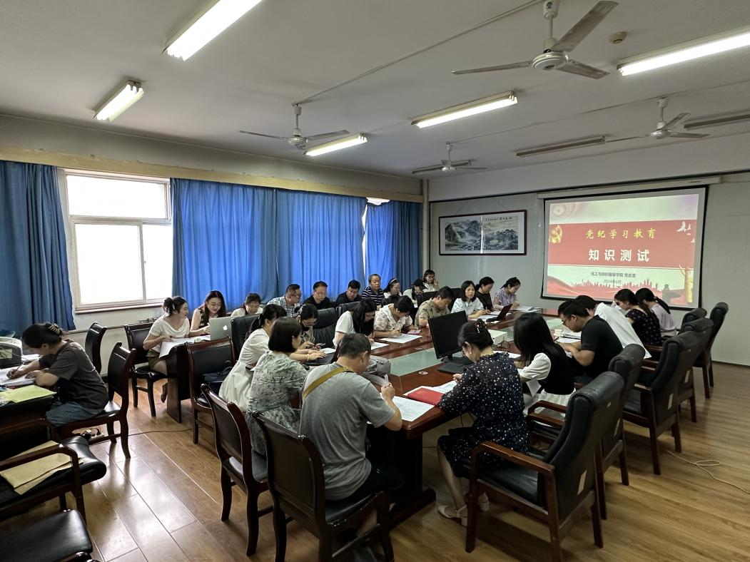 为持续推进党纪学习教育,夯实学习成效,将《党章》《中国共产党纪律处分条例》知识内化于心,外化于行,6月12日下午,化工与纺织服装学院组织32名党员在崇文楼811集中开展党纪学习教育知识测试。