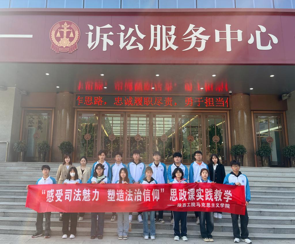 为进一步弘扬法治精神,在社会大课堂中上好思政课,4月26日上午,马克思主义学院思政教师李敏、智月、胡欣婷带领学生走进咸阳市中级人民法院,以“感受司法魅力、塑造法治信仰”为主题开展思政课实践教学,让学生“零距离”感受司法魅力,“沉浸式”接受普法教育。