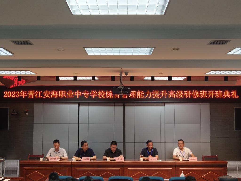 7月7日上午,由我校承办的2023年晋江安海职业中专学校“综合管理能力提升”高级研修班在渭城校区顺利开班。副校长段峻、晋江安海职业中专学校校长李克勤、副校长桂伟伦以及43位参训学员和培训班管理团队参加了开班典礼。典礼由我校继续教育与培训学院院长乌军锋主持。